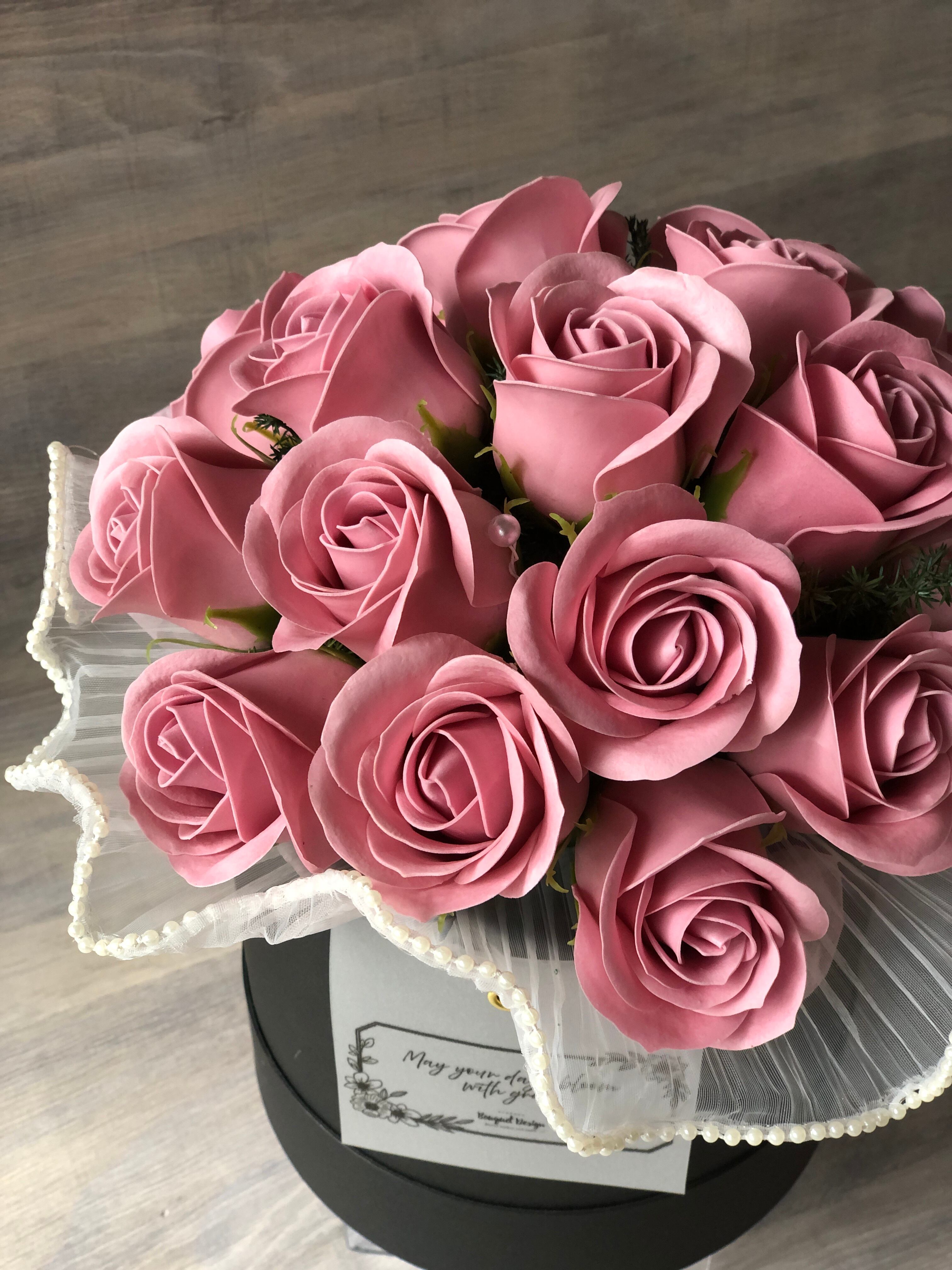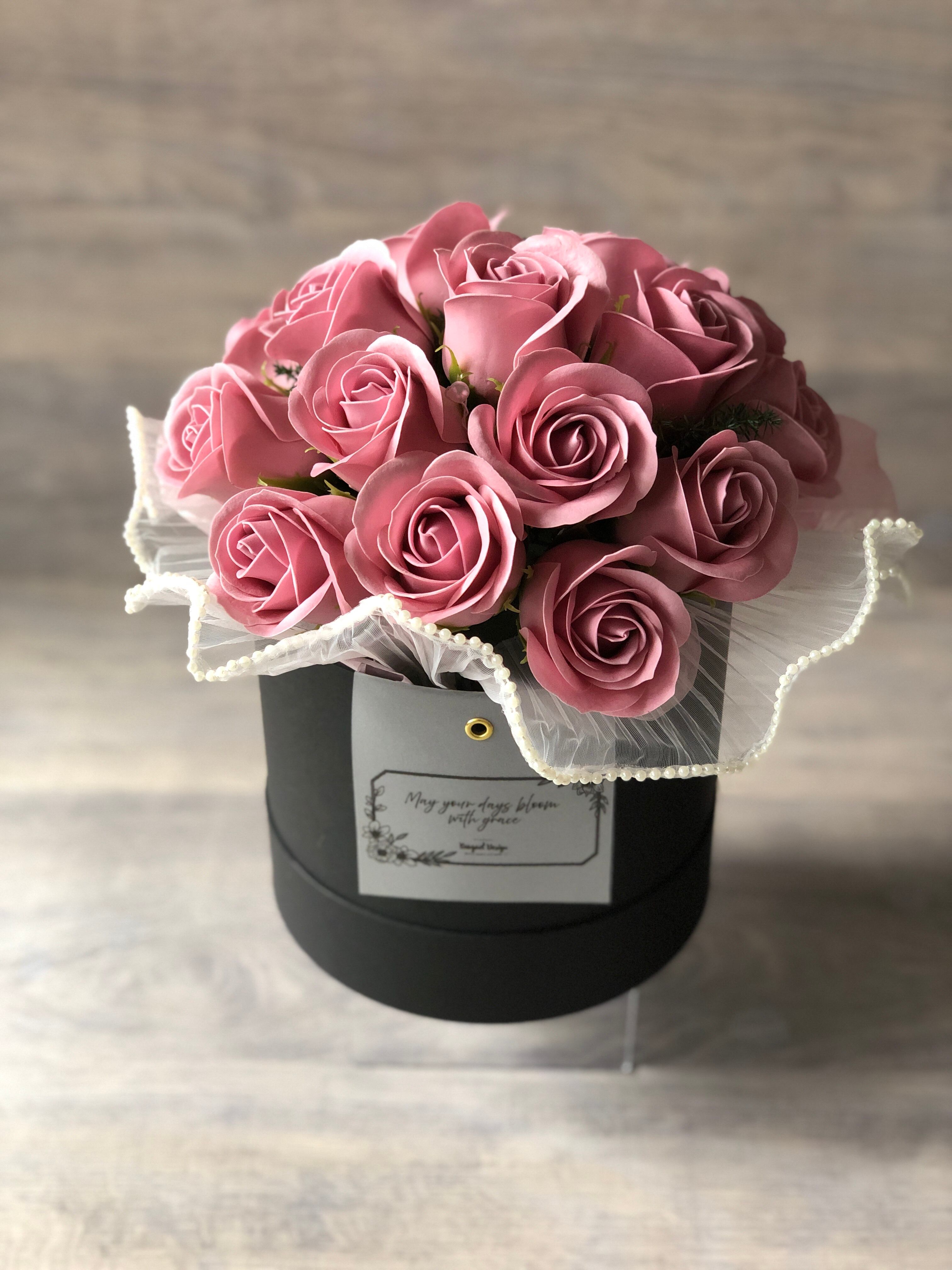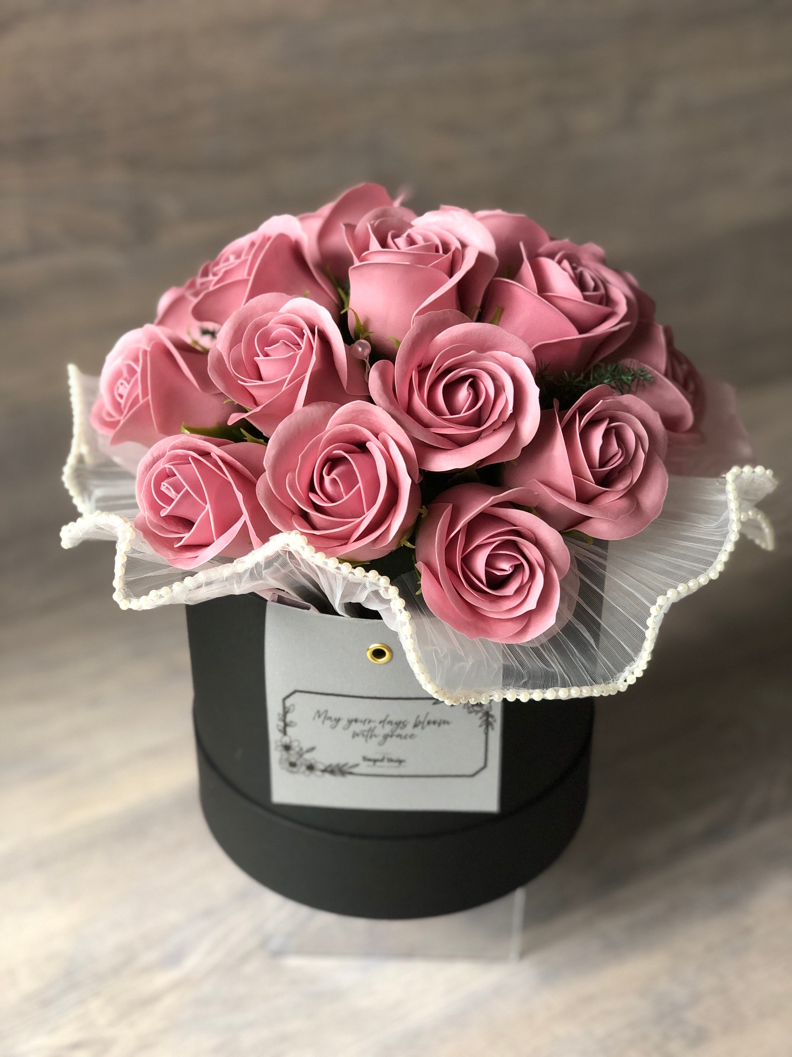 お祝いにぴったり【ソープフラワーローズBOXアレンジ】シャービックピンク